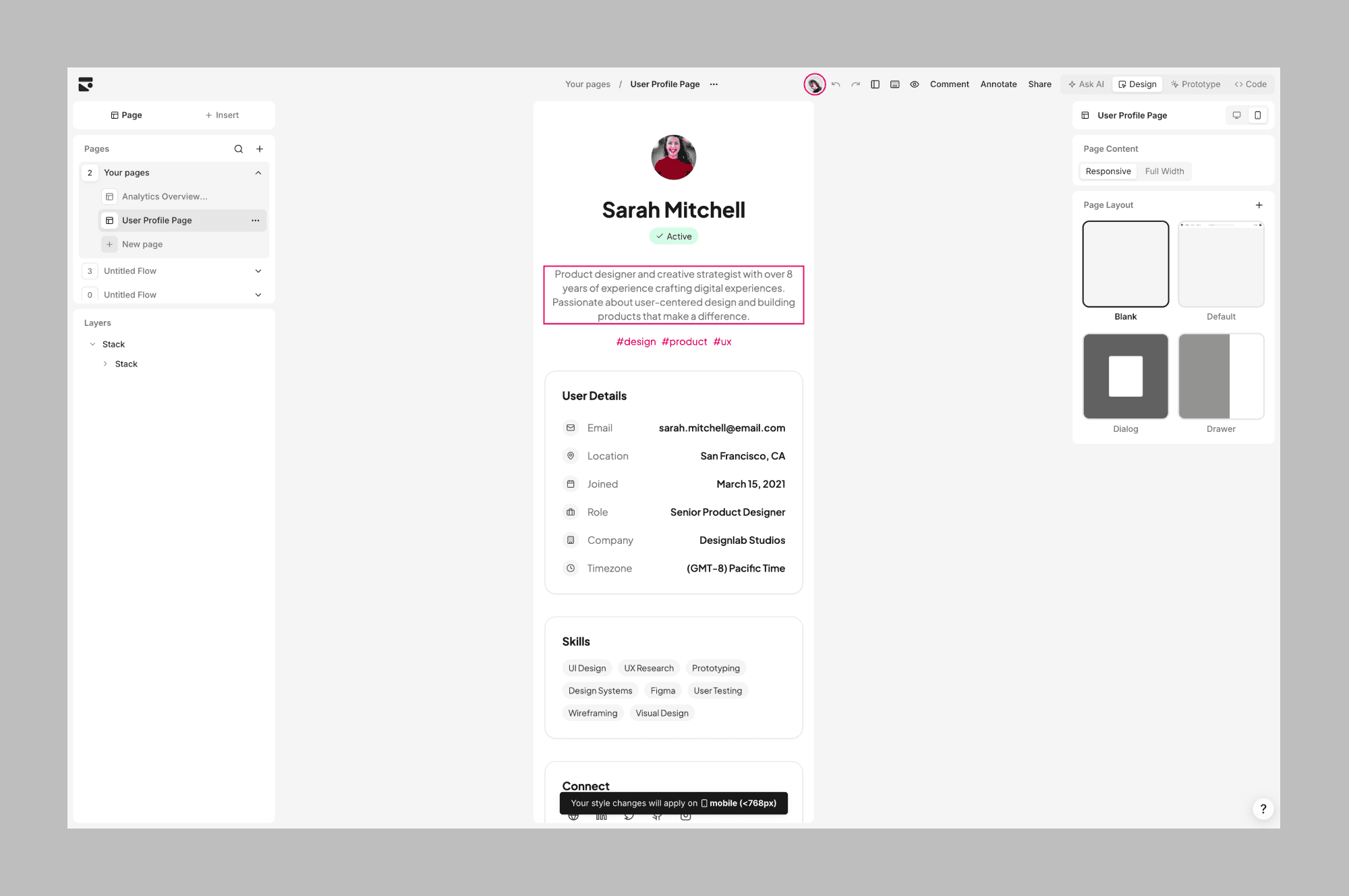 A great alternative if you're looking for something simpler and want an interface that's even closer to Figma where you can move things around and see designs and pages side by side.