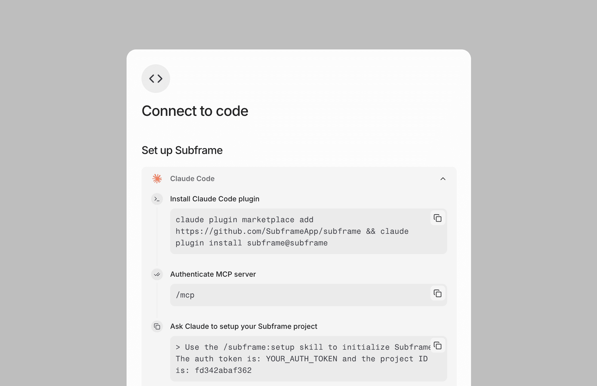 Subframe just shipped a big integration with Claude Code, Cursor, and other coding agents. You can connect your AI agent to Subframe's MCP and give it "agent skills" to pull your designs and generate new design concepts.