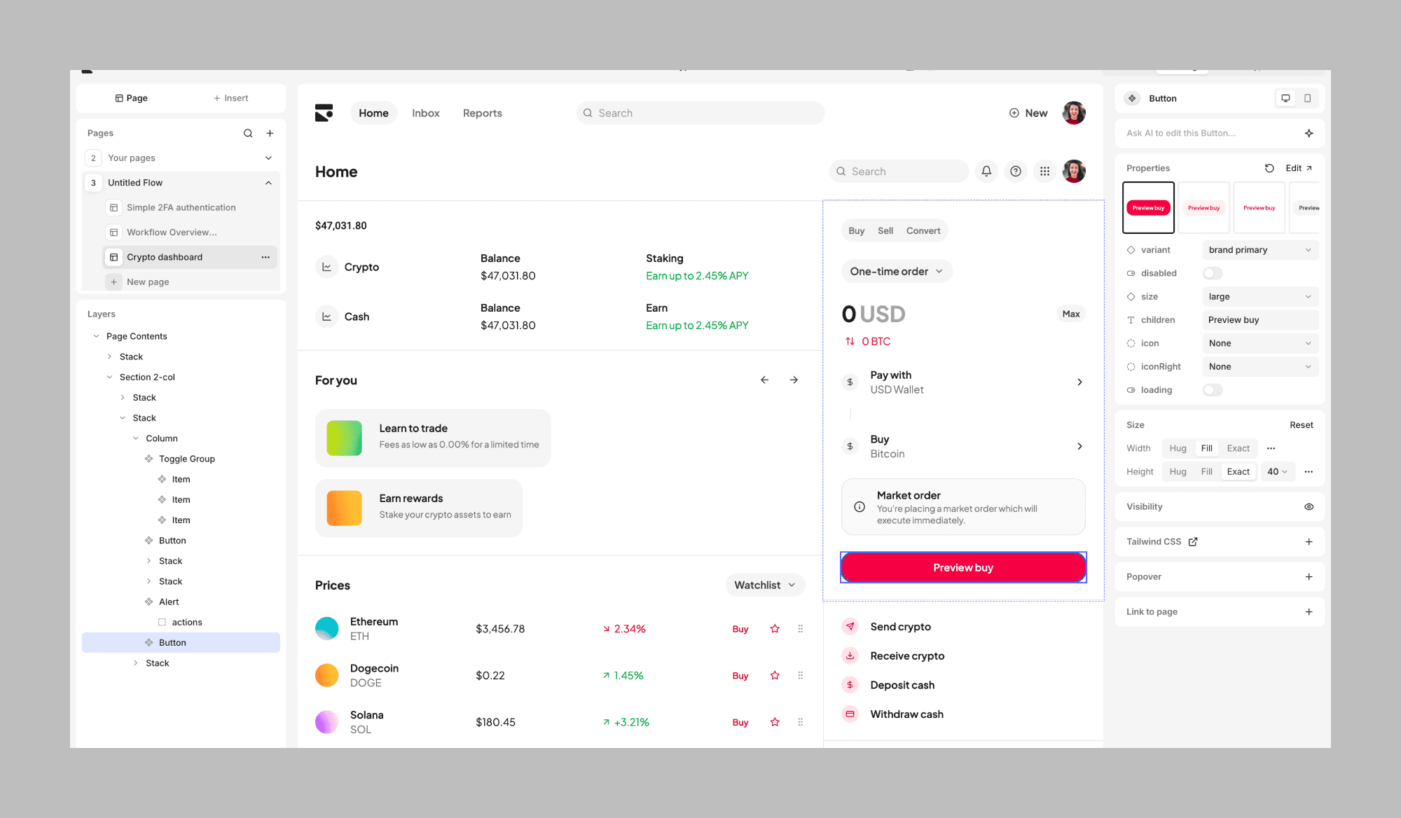 Subframe generates within a defined design system, making sure all designs stay consistent. It's both a positive and negative thing. Unlike Banani or Pencil, Subframe has limited "design exploration" features and works best when you already know how things should look.