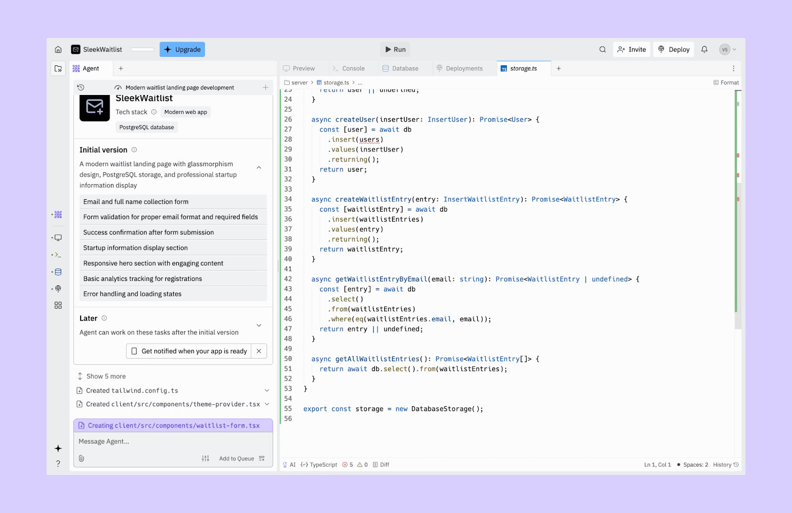 Customization happens across three layers: prompt-based changes, a visual preview editor, and direct code access inside the browser IDE. Responsive preview modes make it easy to test layouts across devices. However, complex design systems often require manual tweaking.