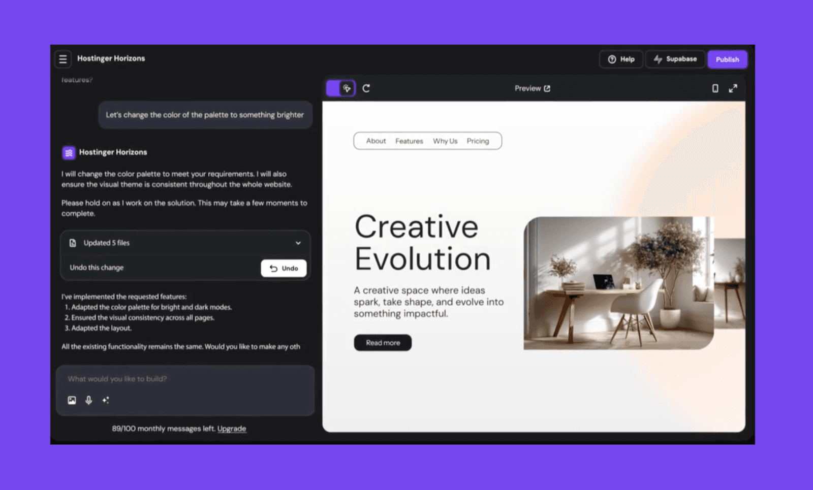 Why choose Hostinger Horizons over Bolt.new: If you prioritize quick publishing and minimal technical overhead with seamless hosting.