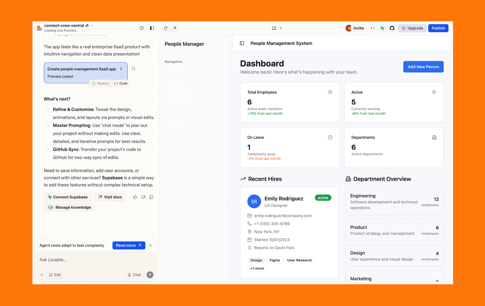 Lovable is an AI-powered app builder focused heavily on design-forward interfaces. It turns prompts into visually polished web apps with strong UI aesthetics and rapid frontend generation.