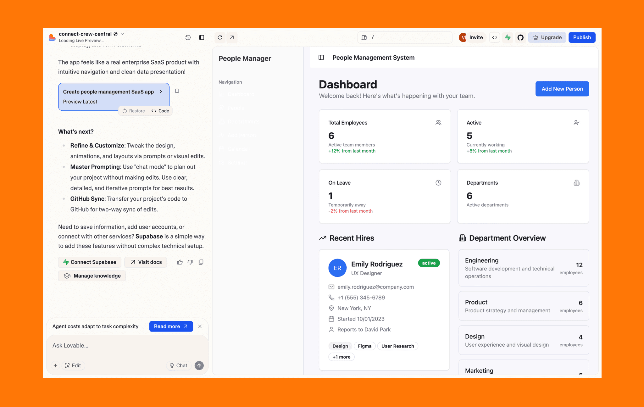 Lovable takes a different approach. Instead of stopping at mockups, it generates working front-end and full-stack web apps using natural language. It’s commonly used by PMs and founders who want something testable, not just visual. Read our review of Lovable alternatives emerged