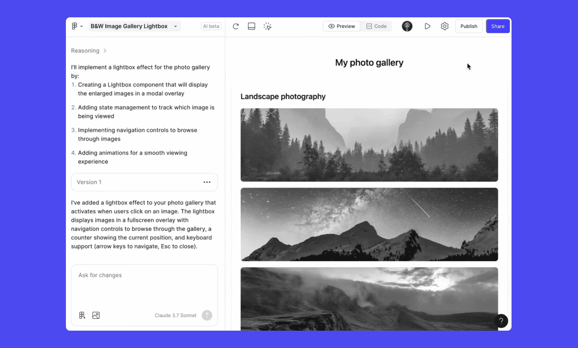 • Live previews + shareable links