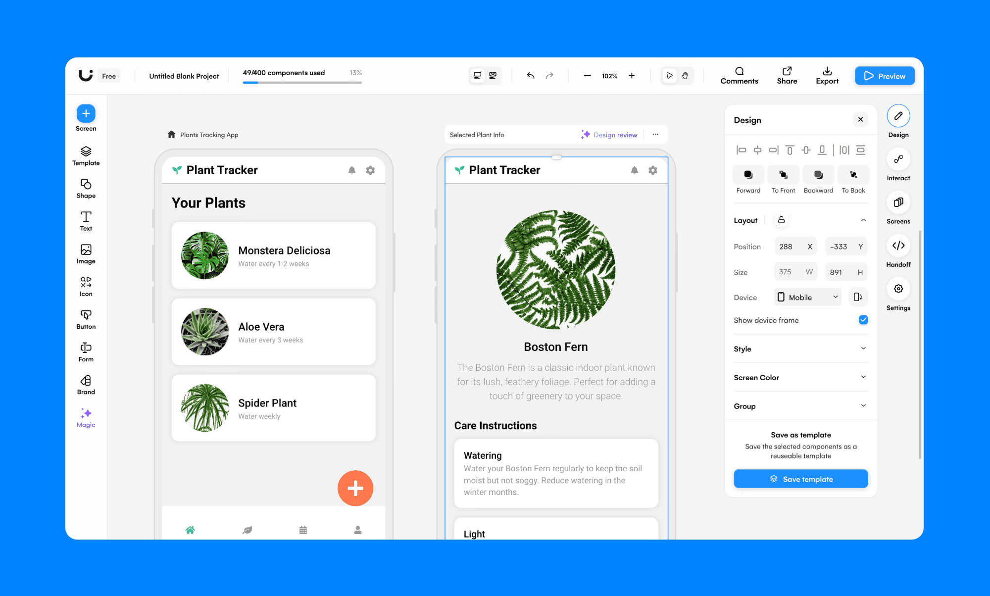 Uizard is strong when your team needs to crank out MVP screens quickly—especially if PMs and non-designers are involved. It’s more “get to a usable prototype fast” than “pixel-perfect brand UI.”