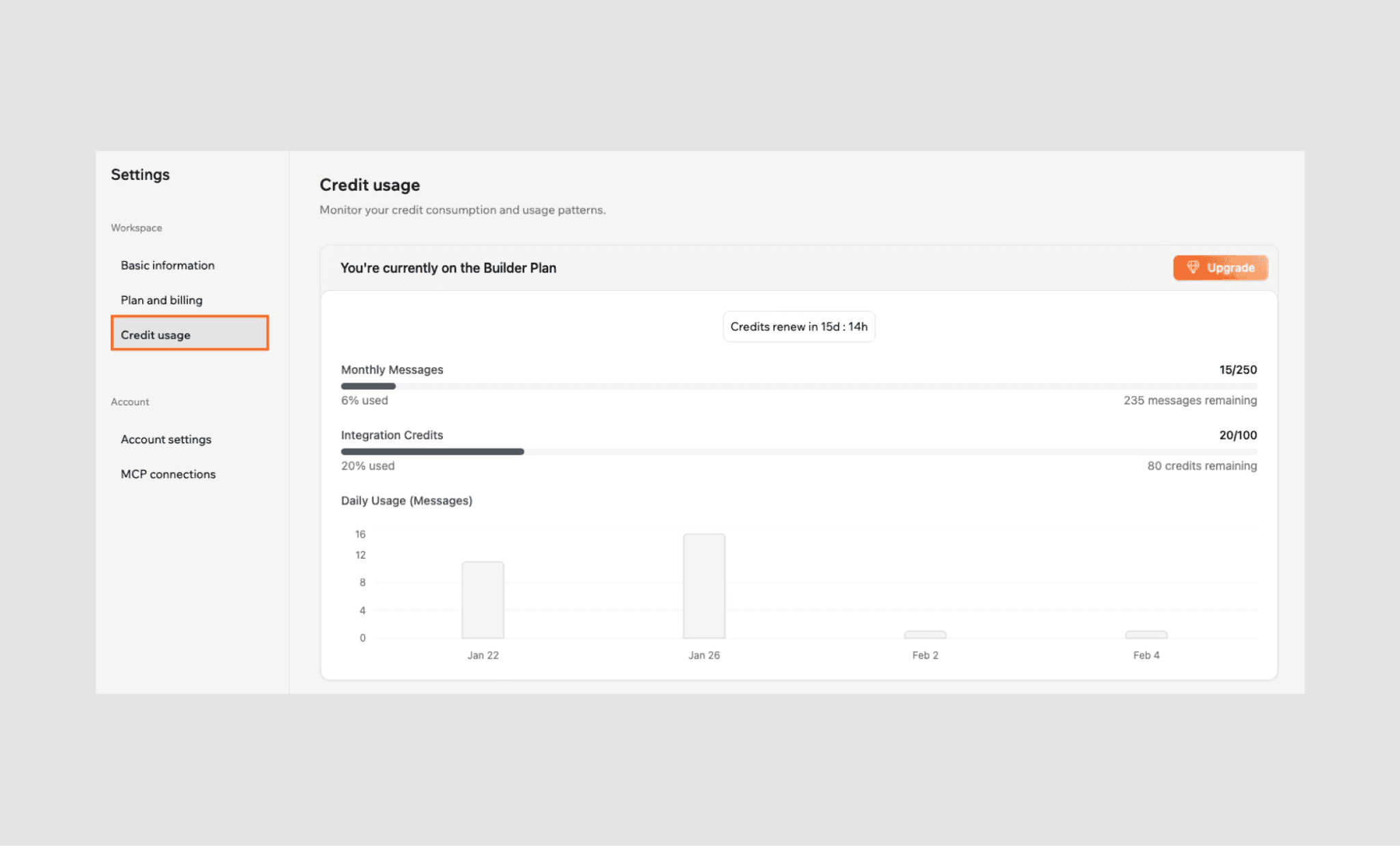 Dos límites de crédito: quedarte sin créditos de mensajes o de integración puede pausar la construcción o romper funciones en vivo.