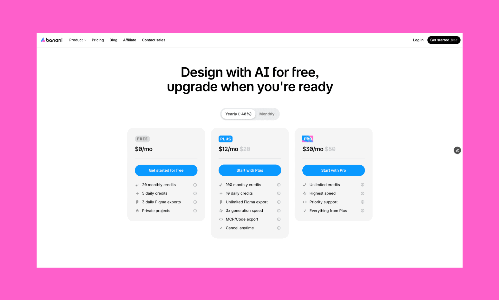 No existe una alternativa completamente gratis a Base44. Su competidor más cercano, Lovable, también tiene un precio parecido. Pero si tu prioridad es crear UI y prototipos más rápido sin quemar créditos de uso, Banani es una muy buena opción para reemplazar Base44. Es especialmente útil para diseñar primero pantallas de app de alta fidelidad y luego pasar al desarrollo cuando la dirección del producto ya esté clara.