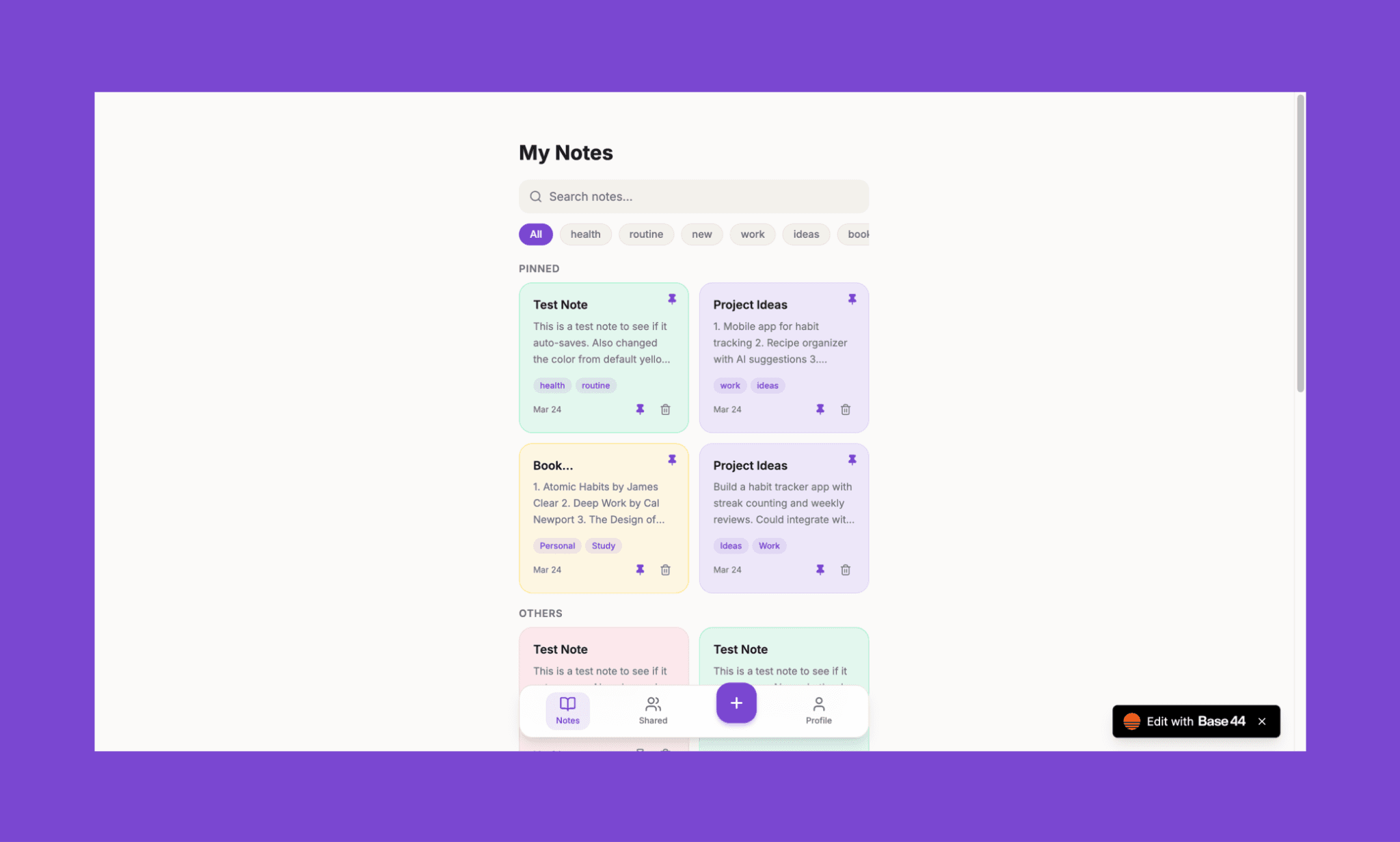 Creo que, para probar las funciones clave de Base44, su plan gratis funciona muy bien. De hecho, creé un prototipo de app de notas usando Base44 gratis. Puedes verlo aquí >